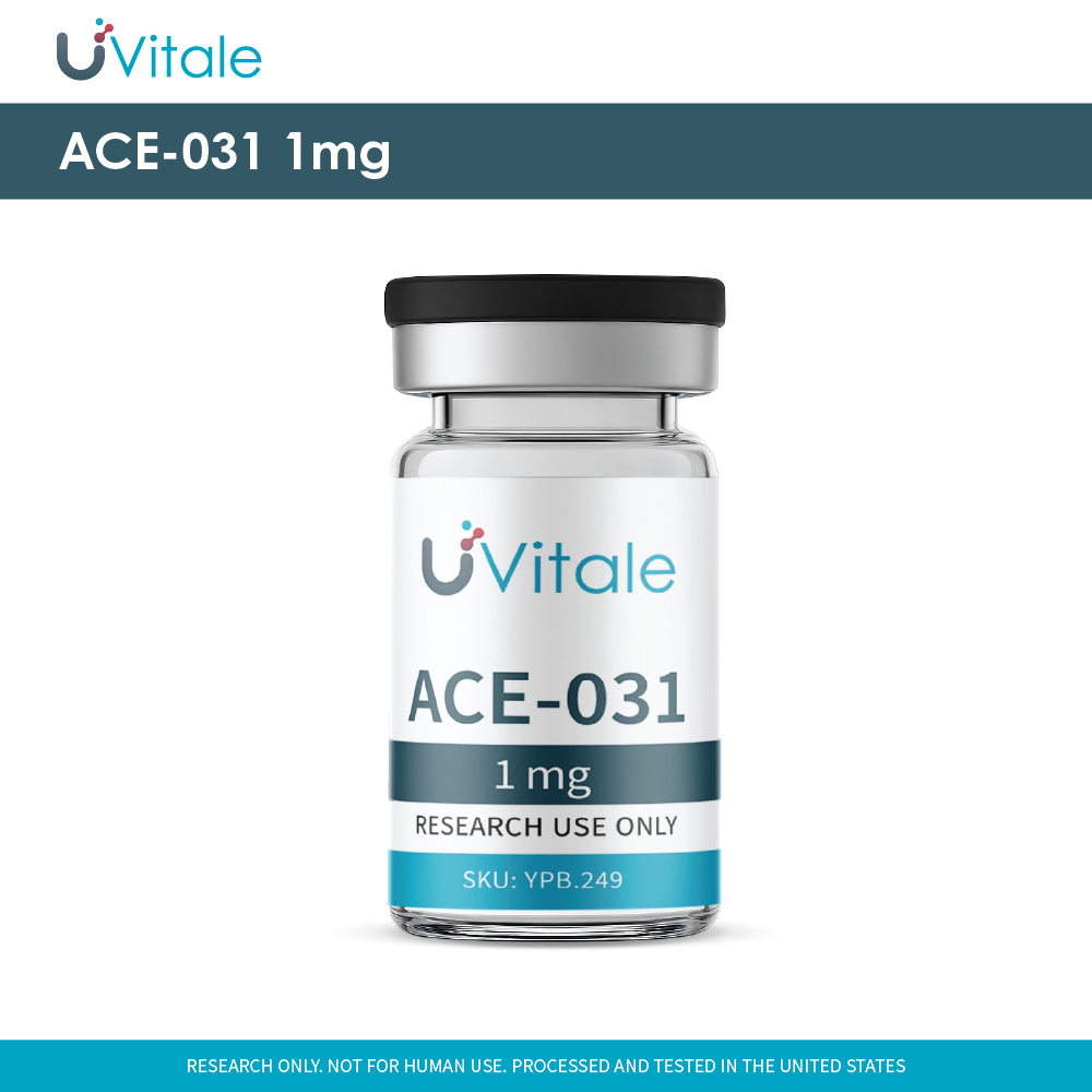 A single-component research material supplied for controlled research environments. ACE-031 (1 mg) is a recombinant fusion protein designed for research focused on activin receptor signaling pathways, muscle growth regulation, and myostatin inhibition in model systems.